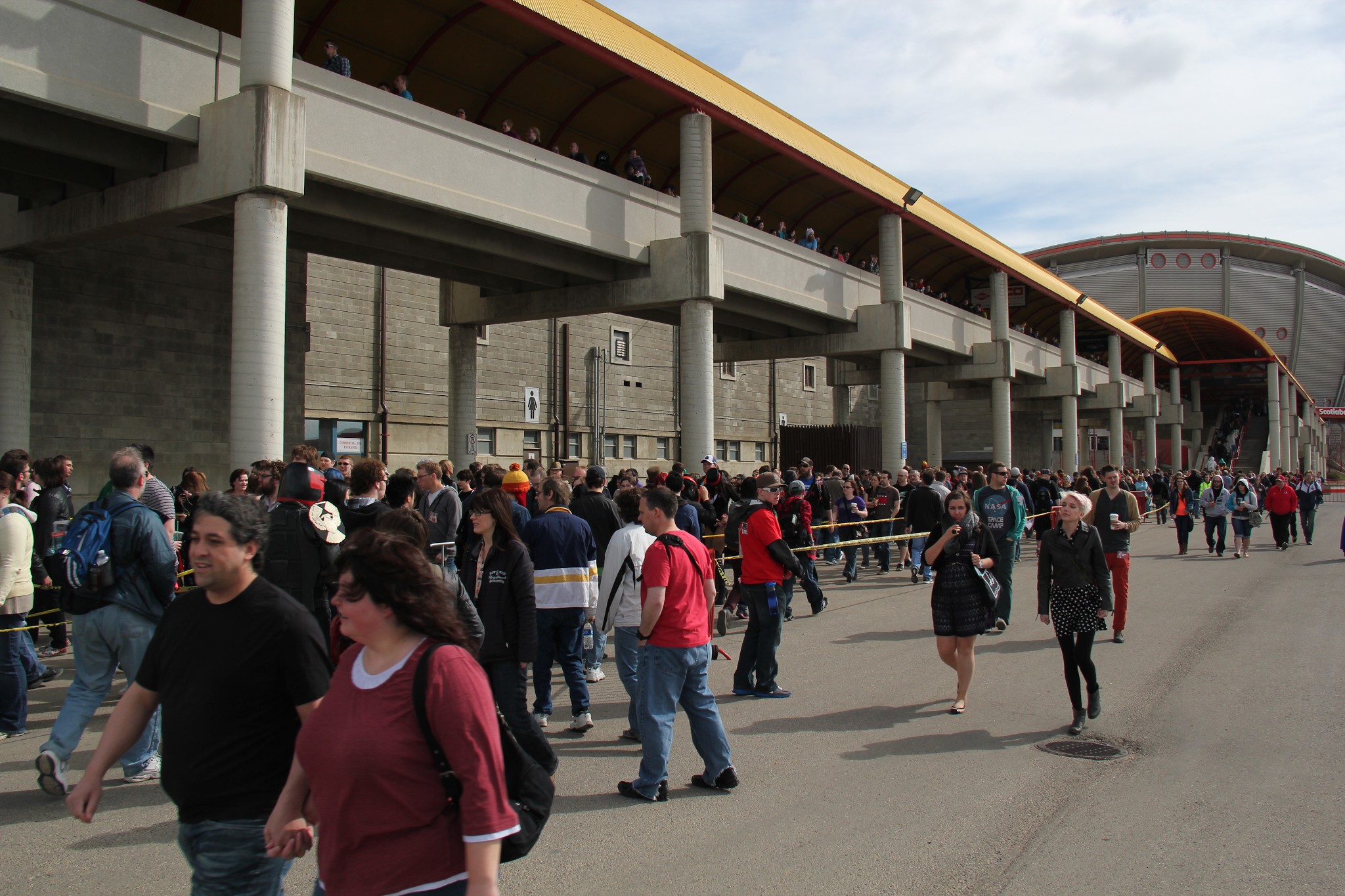 The home of the Calgary Expo is the BMO Centre on the stampede grounds. This year they expanded to include the Big Four building as well. Between the two buildings there were really three sections; the Big Four had registration, photo ops, and the gaming zone, while the BMO Centre had the show floor, panels, and the autograph/entertainment area. The two buildings were helpful in making the event a success this year, but there were still some problems. First, you would stop into the basement of the Big Four building to get your badge. From there they funnel you upstairs to where the gamer’s lounge and food court was. By doing this they were able to prevent people from trying to act like salmon by pushing through the crowds to get out. The only downfall with this was that the basement is also where they’re holding the photo ops which were all scheduled by times, which is all fine and dandy, but if your photo op was at a time when there was a line to get into the building, you weren’t getting in right away. The volunteers were pretty good about getting people who were in line to their photo op on time by pulling them out and bypassing the line altogether.