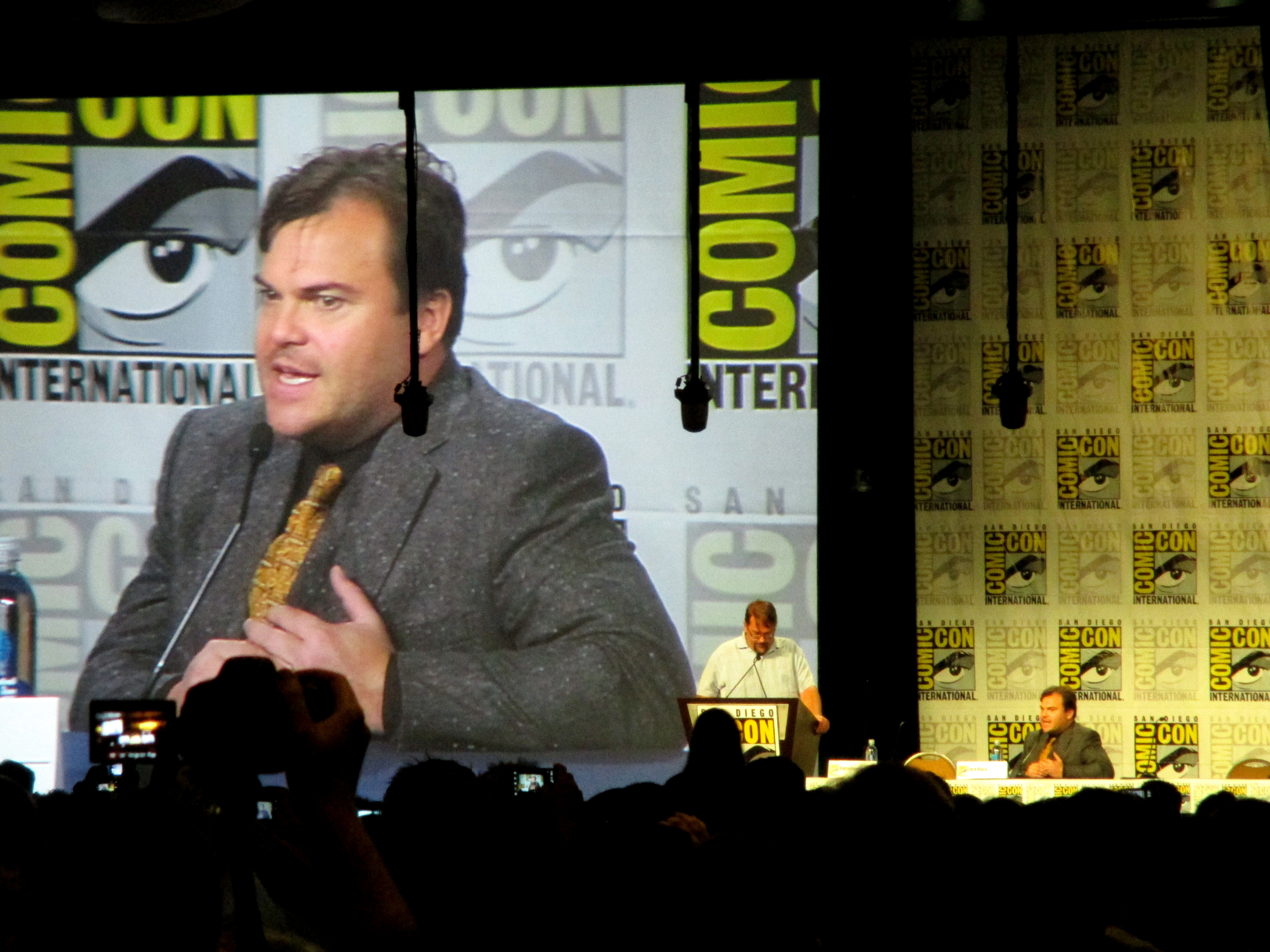 They actually just finished filming two days before the panel and were able to show us a teaser trailer for the film (with only super basic FX). It looked really cool! It had action, humor, creepiness and the quality looked good. Following the trailer, Jack Black and Rob Letterman answered questions from the audience. Based on the questions, fans of Goosebumps are VERY attached to the series. One kid asked Jack Black if he has read all of the books in the series to which he replied that he had “read quite a few but not all.” Then Black joked that there are a lot of books in the series and to give him some time to finish them all. Black also commented on how he enjoys the series because as an adult they are a quick read.