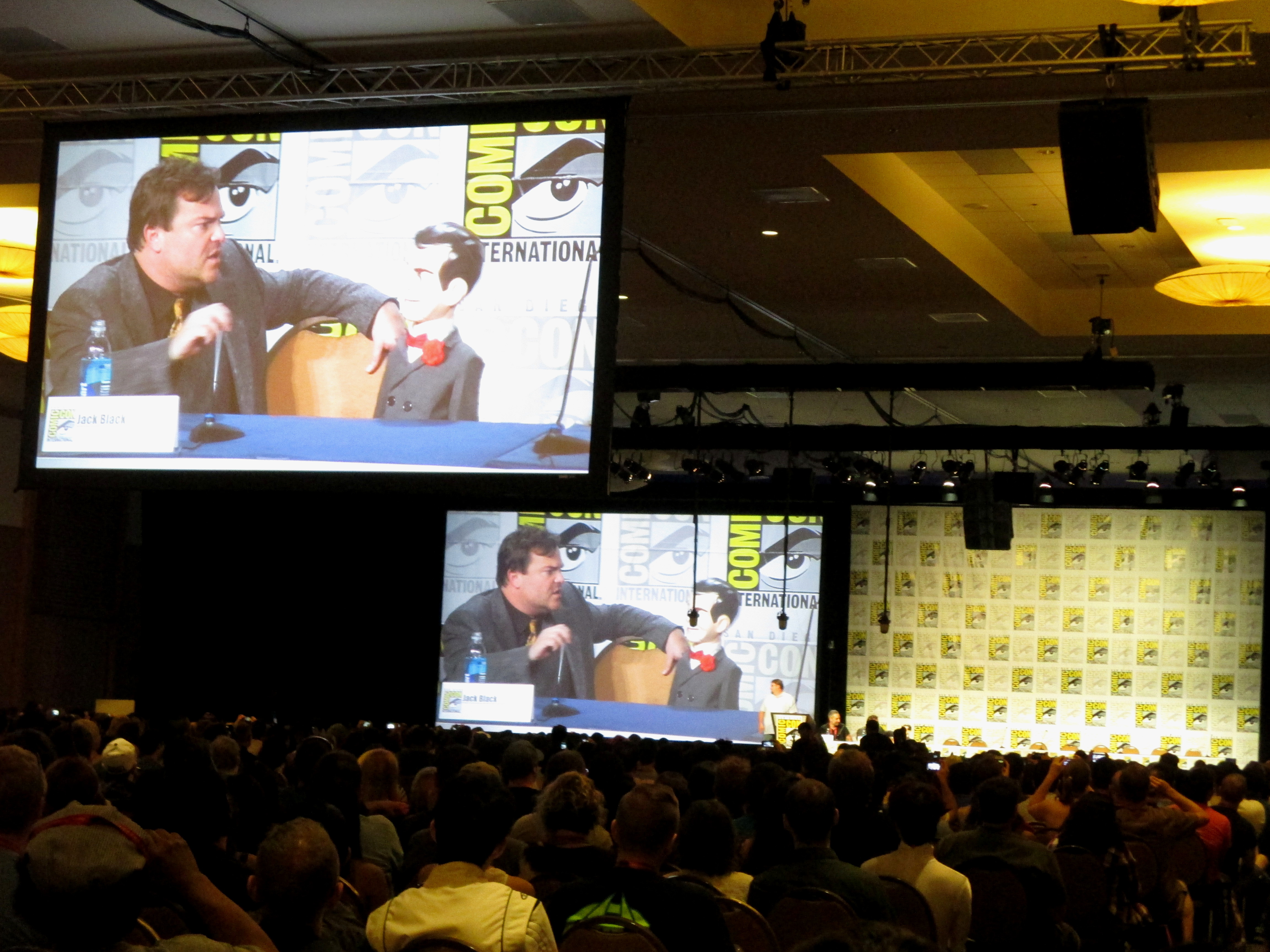 Letterman and Black both said Night of the Living Dummy was their favorite in the series and, at the end of the panel, Slappy himself came out on stage! It looks like Slappy is going to be a major villain in the film and apparently he is like R.L. Stine’s alter ego.  Slappy took over the panel by ushering in a bunch of monsters that dragged Jack Black away. It was a fitting ending for such a panel.