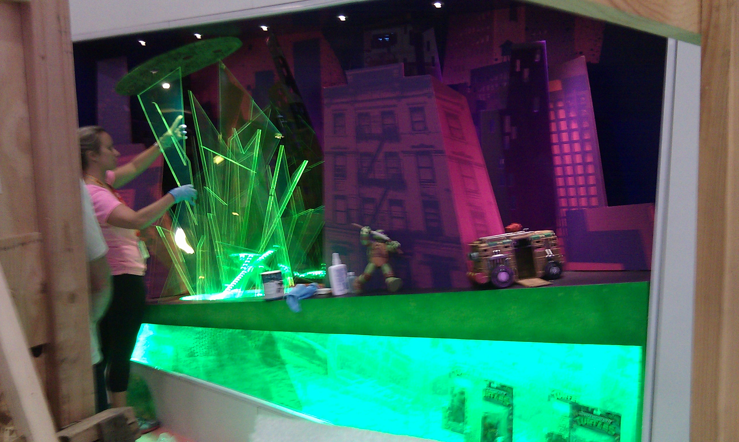 Let me explain what is going on here. That glowing THING in the corner is actually a grey suit. It, is what I believe to be, made out of 3M material. My flash went off and it glowed like the sun.
