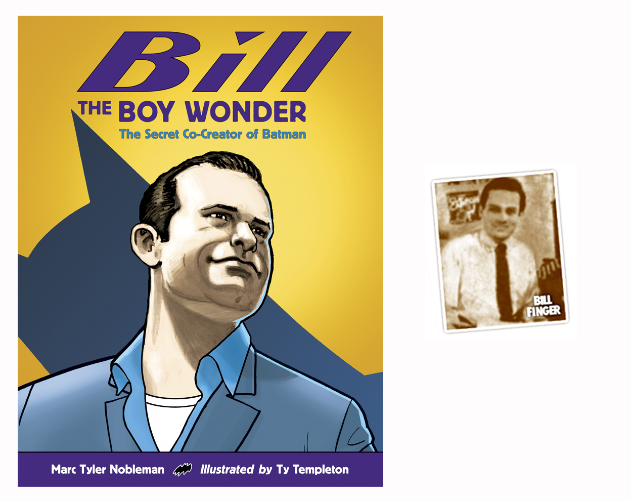 The cover for Bill The Boy Wonder, which is illustrated by Batman Adventures artist Ty Templeton. Next to it is one of the very few pics of Bill Finger to ever make it in print before his death.