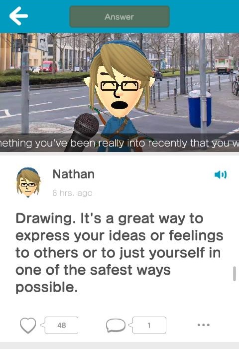 Feature 4 introduces Answer Central, which is just as boring as it sounds. All you do here is look at randomly chosen answers from other peoples randomly chosen questions. There honestly nothing to talk about here. You’re just looking at random peoples answers. It’s even more boring when half of the answers are just blindly praising Nintendo for for making the app. You can get an interesting answer, but they are few and far between.miitomo-update-4