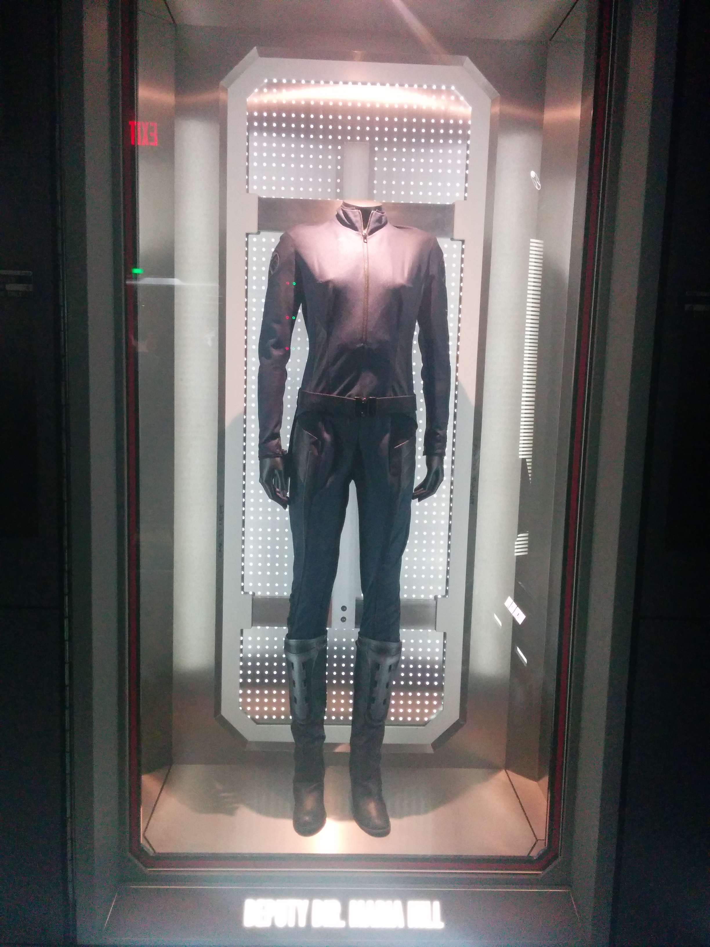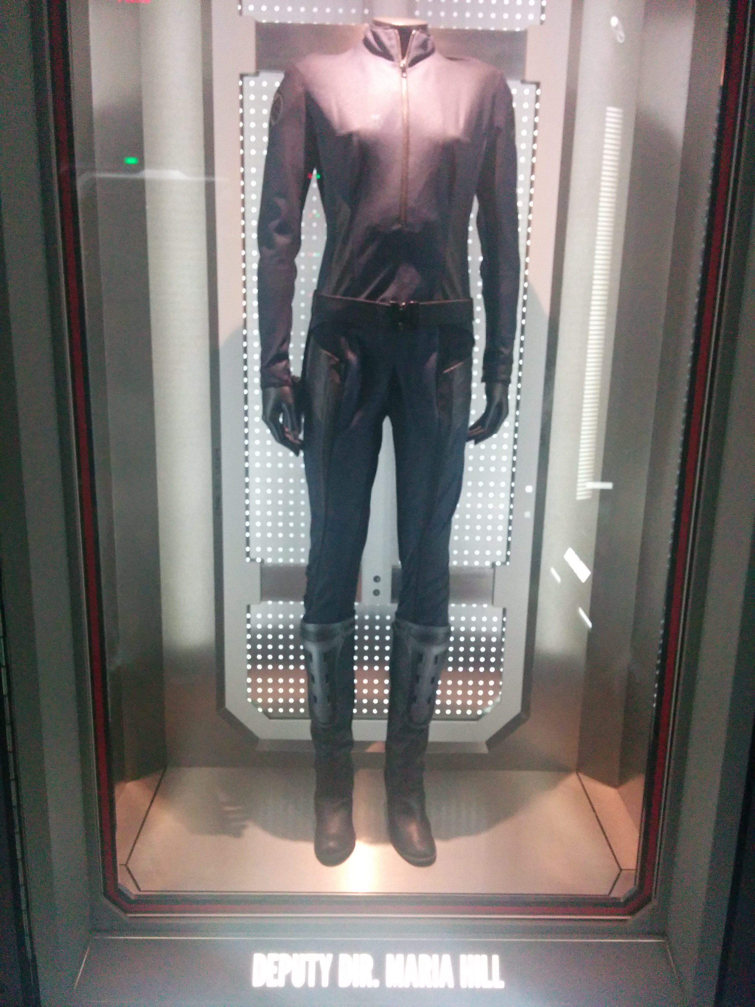 You then enter the Avengers briefing room, where you are given a rundown of what’s happened in the Marvel universe up to the point of the Avengers movie. The volume was really low in this room so i couldn’t exactly hear what was said, but from here on out you just sort of free roam into the the other labs. I have the feeling that this will be a somewhat guided tour to get people to move along and not hog up the different interactive elements of the exhibit. In between the briefing room and the next room is an array of customs from the b-squad of the avengers, Phil Colson, Maria Hill, Hawkeye, Black Widow, and Nick Fury.