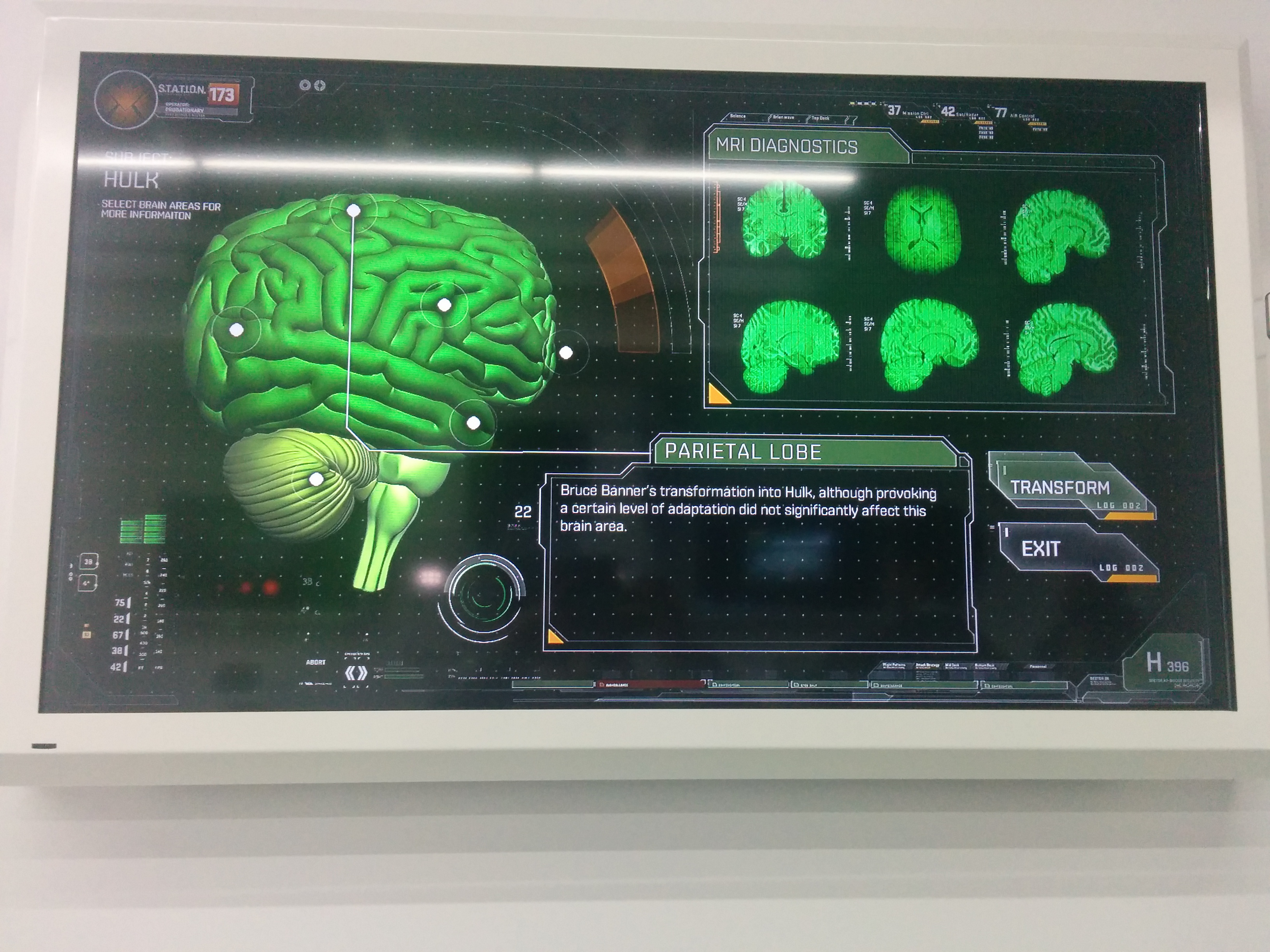 The third room is the S.H.I.E.L.D. Bio-lab, and here you get to examine the science behind the Hulk. Since the main draws in this room were barely working, I was told that you get to stand in front of the Incredible Hulk and he mimics your movement. Some key moves that triggers some vibrations and loud noises are the Hulk’s clap and wall punch. Sounds cool. The other key thing in this room is the Tessaract machine that was on top of Stark Tower. I was told that you get to scan your hand print and it activates the machine, causing loud noises and the room to shake, but you know, it wasn’t working. The only thing working was seeing how Dr. Bruce Banner’s mind alters once he starts transforming into the Hulk.
