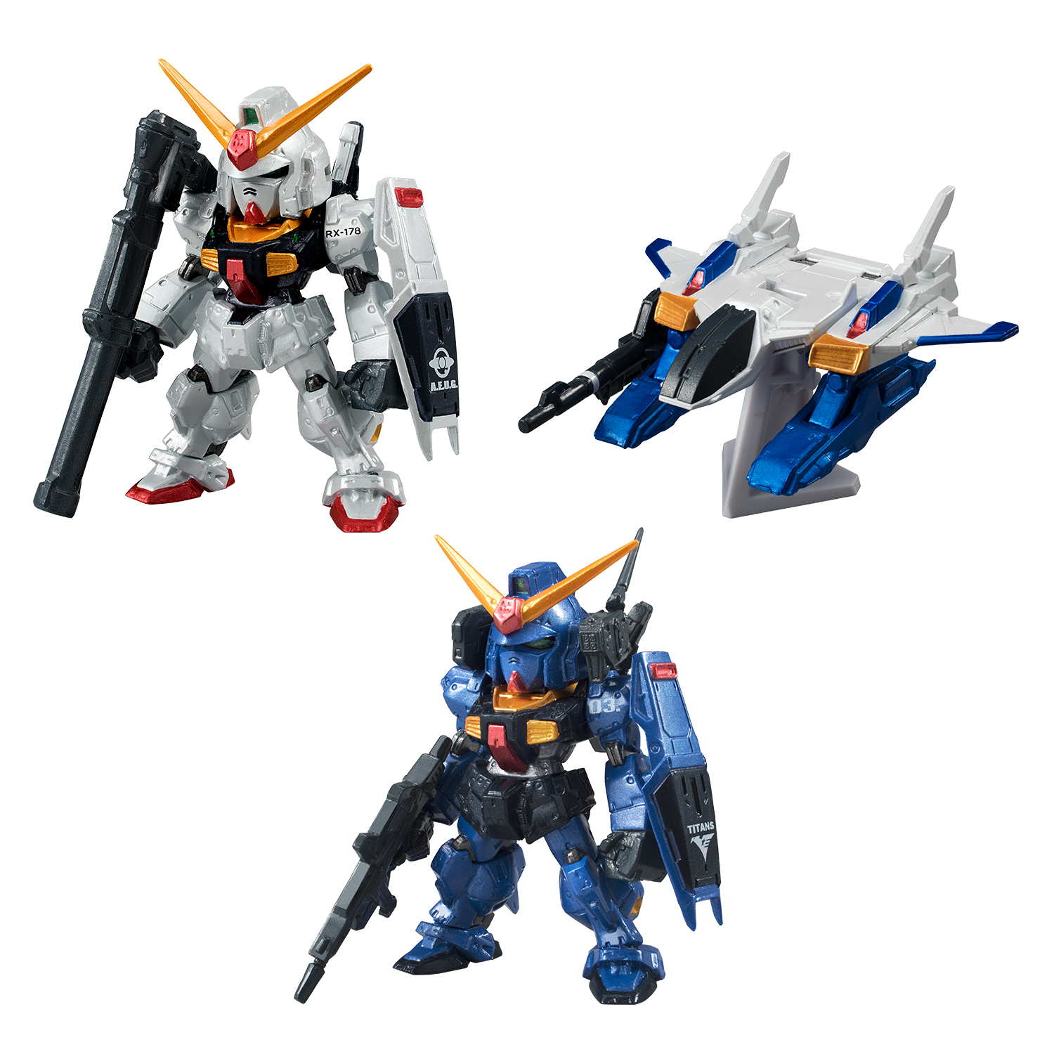 This special 3 pack consists of metallic colored versions of the Gundam MK II in AEUG and Titans colors along with G-Defenser that can combine with either figure to create the Super Gundam. It has been made specifically for select regions such as the U.S.!