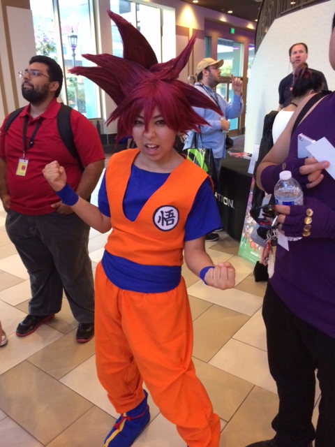 Dragon Ball fans that purchase a Bandai Scouter headset at the Bluefin booth will receive Super Saiyan Hair that can be placed snugly over the head.
