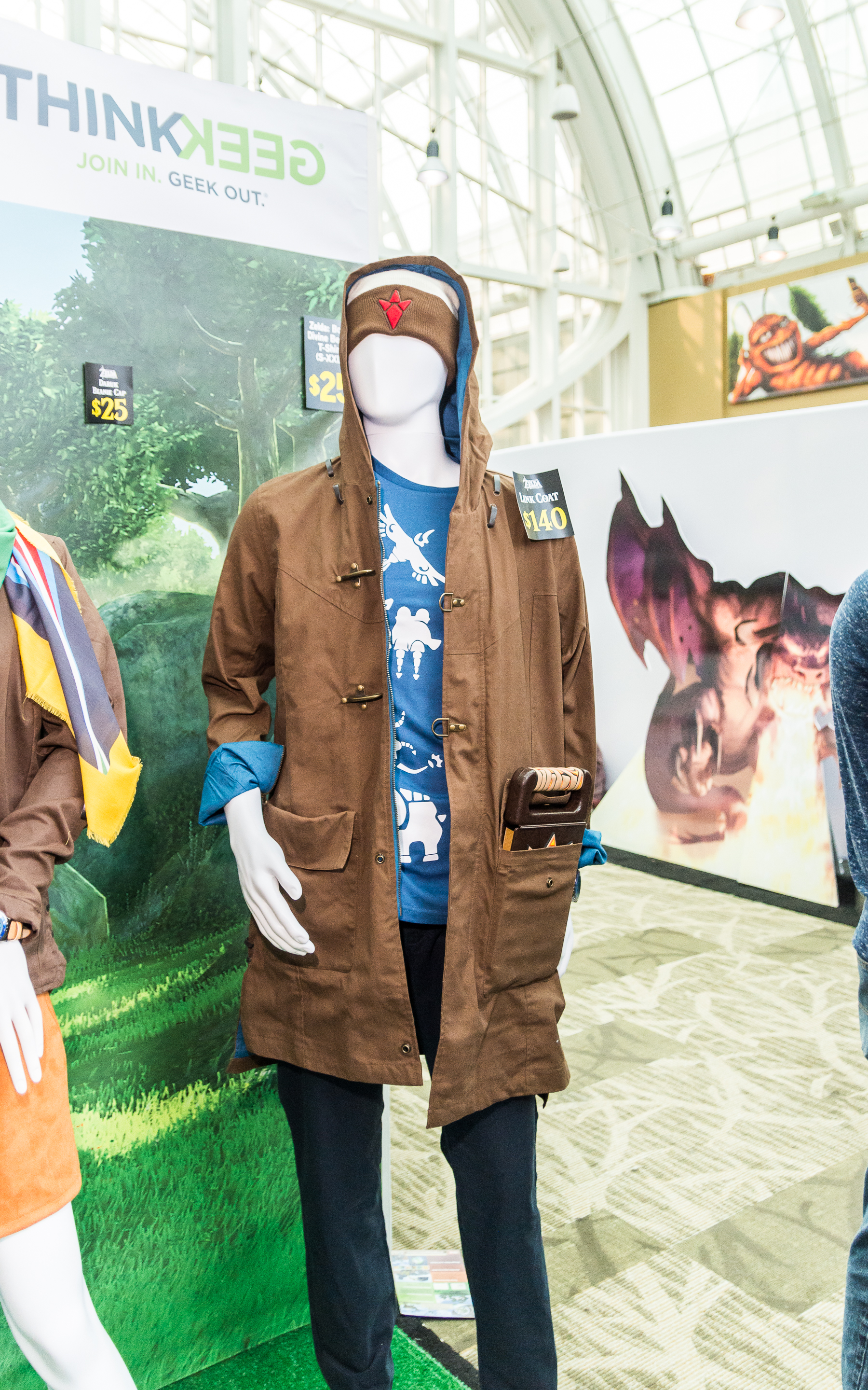 The two jackets on display, both a chocolately brown, had subtle details that tie them into the Zelda universe, so they could be worn pretty much anywhere without being ostentatious.