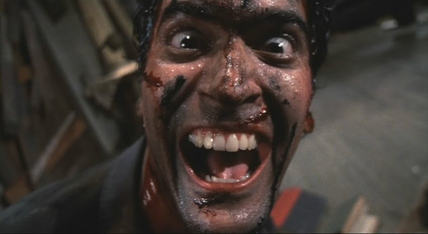 And about that dialogue. As teenage boys, we tend to immerse ourselves in shallow action films, and are drawn to delightfully callow badassery. And no hero is more delightfully callow than Ash. As played by Bruce Campbell, Ash is a handsome and put-upon everyman whose workaday attitude and practical thinking lead him to deal with evil ghosts in the most pragmatic fashion. For instance, when he sees a monster lunging toward him, he doesn’t think to prepare a weapon for decapitation, but merely punches it in the face. Indeed, there is a lot of punching in this film. People punch monsters and monsters punch people. That’s kind o brilliant. The spawn of ancient evil forces lurches up from under the ground, and all they can think to do it smack you around a little bit.