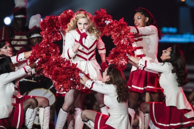 After this, Madonna spoke to the audience and said it was “time to have our serious chat.” And Madonna started to speak about Malala Yousafzai, the young Pakistani girl who currently clings to life in hospital bed, after being shot by Taliban extremists for daring to advocate for the rights of girls to be educated. “This made me cry, the 14-year-old schoolgirl who wrote a blog about going to school. The Taliban stopped her bus and shot her. Do you realize how sick that is? Support education! Support women!” The crowd roared in approval. “One thing I’ve realized during my travels is how lucky we Americans are. We are for sure an imperfect country with an imperfect government. But I tell you — the shit I have seen in the Ukraine and in Russia… May I remind you that two members of Pussy Riot are still in jail. In St. Petersburg, 75 men were arrested for being gay.” But before things got too serious and bummed everyone out too much, she launched into one of her first and most iconic hits, Holiday. Seriously, you just can’t go wrong with Holiday. Instead of ending this act here, she goes into her sappy ballad Masterpiece from her movie W.E. Yeah, for me this is a good time for a bathroom break.