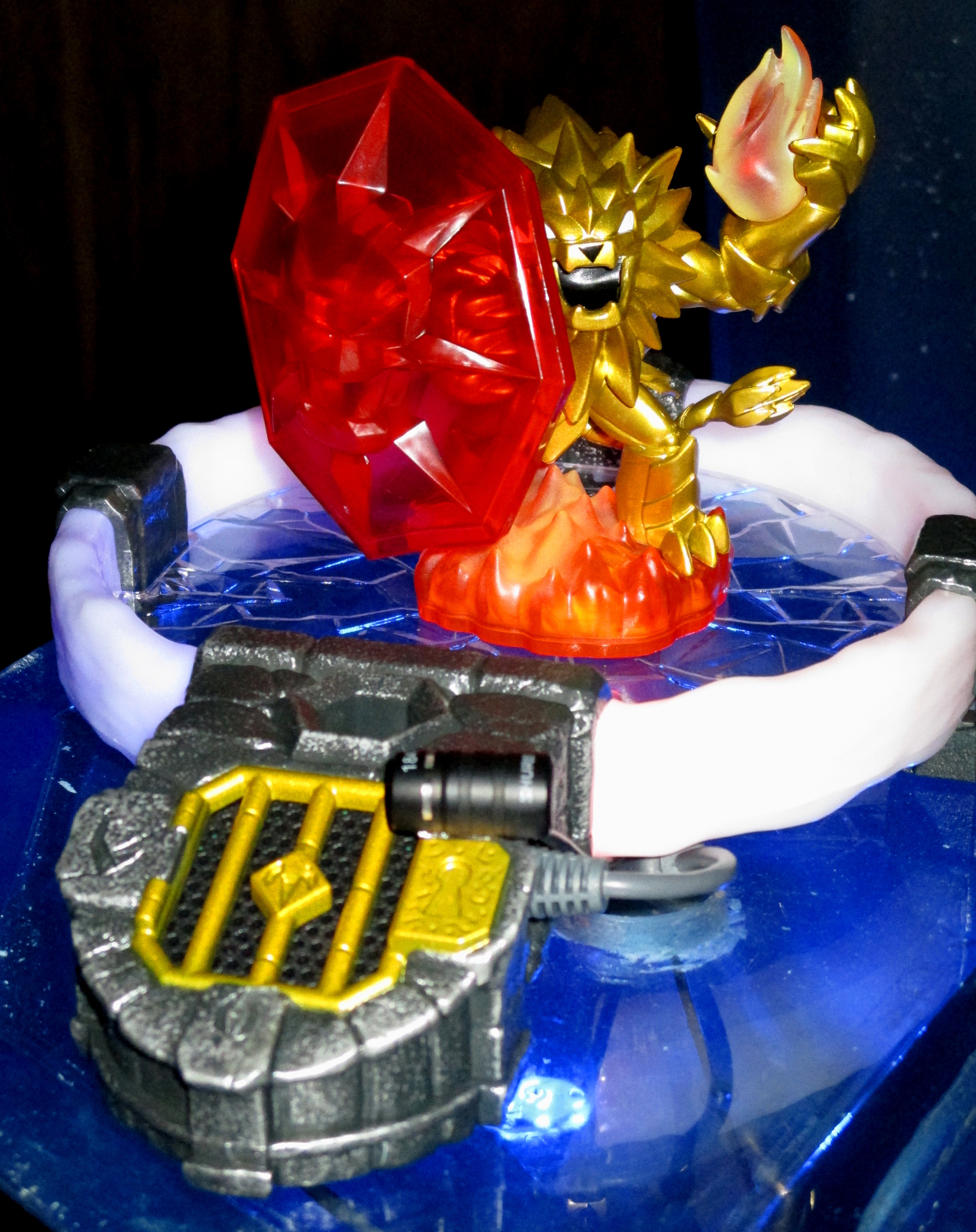 Not only does the portal light up, but the crystal traps do too! The crystals are placed into the portal in a section that looks like a dungeon. There is a speaker in there and the villians talk to you while imprisoned. They will let you know if they are ready or not ready (you can only use them for a certain amount of time), they can drop hints on what you are supposed to do and they can congratulate you when you do well.