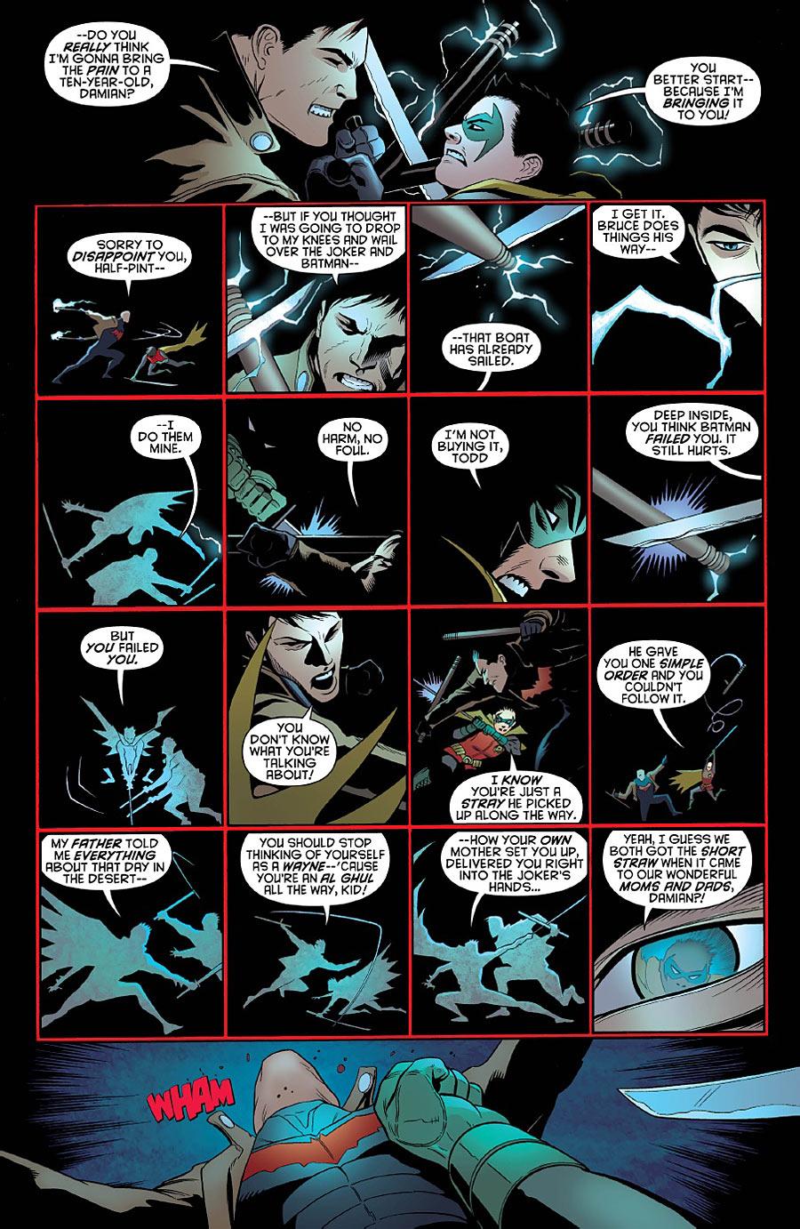 • DAMIAN makes good on his decision to defeat each ROBIN, and in a brilliant show of arrogance, starts with RED HOOD!
