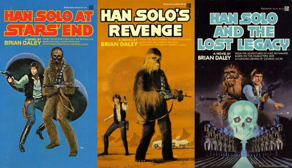 If the rumors are true and Disney really wants to make films based on a younger Han Soloâs adventures, then they should look no further for a basis to them than this series of books released between A New Hope and The Empire Strikes Back. These three novels, Han Solo At Starâs End (1979), Han Soloâs Revenge (1979) and Han Solo and the Lost Legacy (1980), were not only chock full of swashbuckling space adventure but also shed light on questions left unanswered by the Star Wars films, like âwhat exactly were the circumstances of Han and Chewie meeting?â and âhow did Han Solo get that scar on his chin (you know, the Harrison Ford scar!)?â Well, this trilogy of books answered all of them in classic 70s science fiction fashion! Like the Goodwin/Williamson comic strips, these stories were flush and consistent canon long before the Prequels started contradicting things (like how come Han doesnât believe in the Force when his best bud die Chewie fought with Yoda in the Battle of Kashyyyk?). Lando did have his own mid-80s book series, The Lando Calrissian Adventures (made up of 3 books), but they needed some retconning to make them fit the Expanded Universe and are really only memorable because they cover the period of time Lando flew the Millennium Falcon before losing it to Han and because they introduced the Star Wars card game of Sabacc seen in other parts of the Expanded Universe.