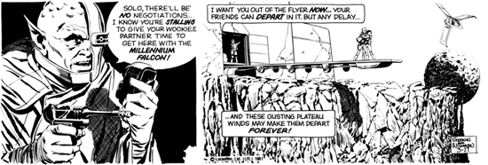 These are enormously overlooked gems… but they shouldn’t be. In fact, these might be the purest forms of Expanded Universe stories out there, released concurrently with the original film trilogy. From 1979 to 1984, The Star Wars Comic Strip was published in newspapers. Really, though, what you’re looking for is the run that Archie Goodwin wrote with art by Al Williamson that literally took place between A New Hope and The Empire Strikes Back. Dark Horse collected and rereleased them years ago in a title simply called Classic Star Wars and did a great job of them. Seek these issues out if you can because unlike Splinter of the Mind’s Eye (the 1978 novel that at the time was the “sequel” to A New Hope), the Goodwin/Williamson stories felt like classic 70s and 80s Star Wars. Luke, Leia, Han, Chewie and the crew planet hopped from planet to planet looking for a new home for the Rebellion after the Battle of Yavin, the entire time trying to avoid Imperials and a vengeful Vader (who was not yet revealed to be Luke’s father of course). And Han continues to try and resolve his debt with Jabba the Hutt while escaping his bounty hunters as seen in the fantastic storyline The Bounty Hunter of Ord Mantell. These stories were fantastic and much better than the Star Wars comics that Marvel was printing at the time. Sadly, they may have already been thrown out of canon as this is the same point in the Star Wars timeline that Dark Horse’s current Brian Wood series takes place during. That being said, these stories are as pure original Star Wars as it gets on this list and they deserve their pace in the canon.