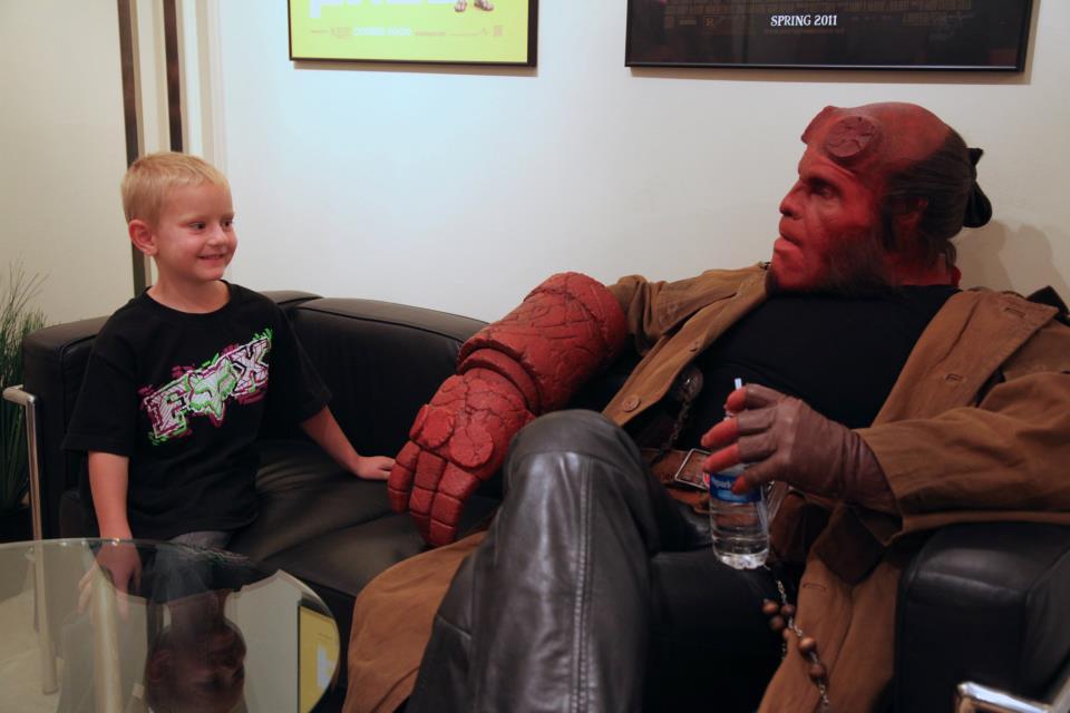 So, I spotted this story and thought it’d be something really cool to share with you all. This is a really touching story involving Ron Perlman himself once again dressing up as Hellboy to make a young boys wish come true. Zachary is six, and is currently being treated for leukemia and Ron went above and beyond to make this wish a reality.