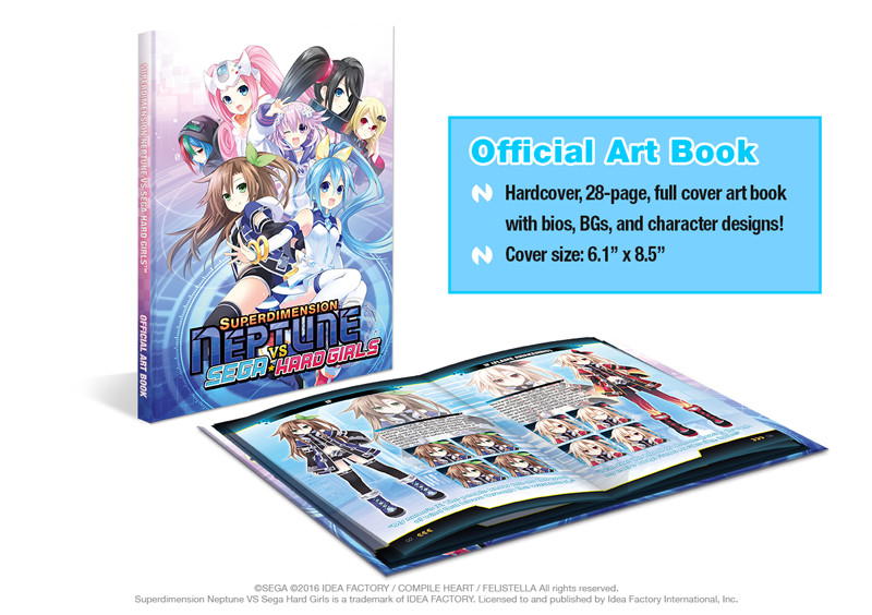 It wouldn’t be a proper limited edition without a soundtrack or art book, right? Luckily, in addition to the goodies listed above, we’re getting both! The art book shows off character designs and shares brief profiles of each of the featured characters, while the two disc soundtrack features Mr. Badd’s “daughters” from Victory and Re;Birth III on the cover.