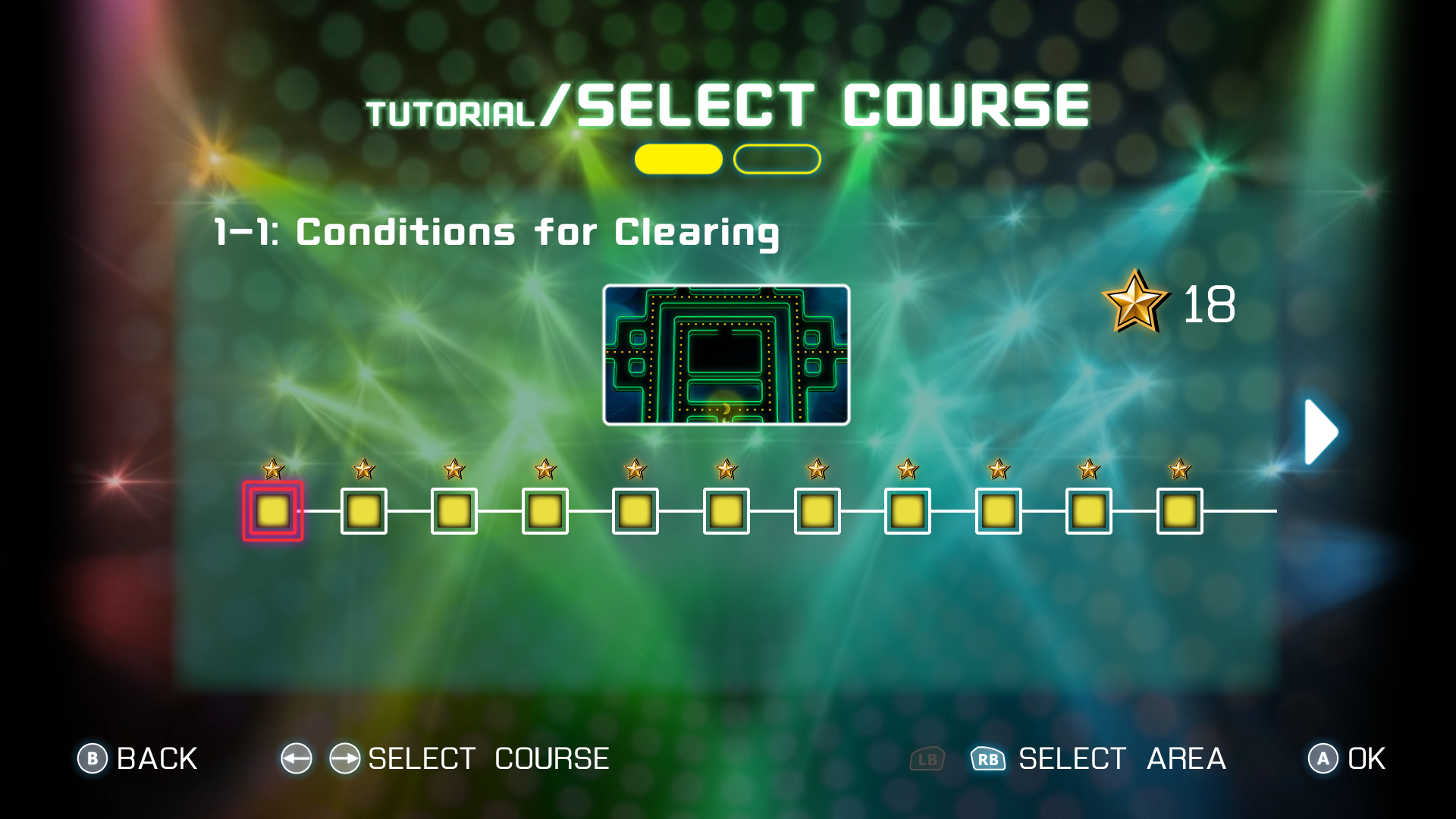 Championship 2 is split into 2 modes. Score attack mode is as you remember it from the original. It’s fast paced, heart pumping and dangerously addicting. Bandai Namco did however make a few tweaks to the formula so that there’s still a bit of a learning curve even for vets of the series. Ghosts aren’t an instant kill anymore, instead, depending on what difficulty you’re on, you can bump into them as many as 3 times before enraging them to chase you. Not only that, but ghosts will also flee in a certain pattern when you collect a power pellet. These changes allow for more risk taking, and while it may be harder to catch ghosts with the pellet now, it feels much more satisfying.