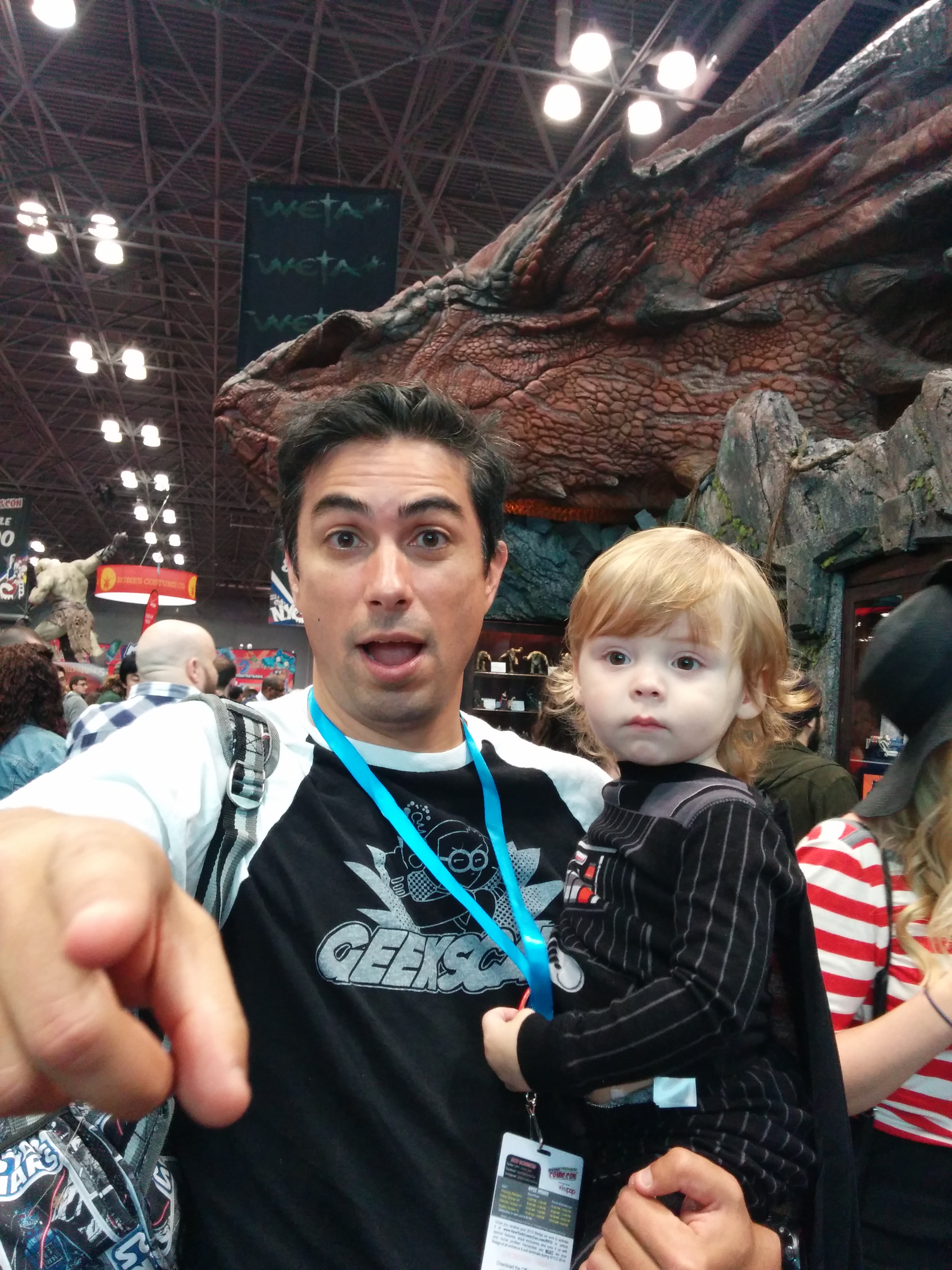 My convention experience started on Tuesday night with a threatening text message, “At LAX. COMING FOR YOU….-SAM.”  It would be another 4 days before he would get to me. Unable to attend NYCC on Thursday and Friday, I supplement it by attending the Geekscape meetup Friday night. Food, drinks, and funny stories were shared, but it was obvious that the con had taken its toll. Everyone was dead tired. Tomorrow was going to be a new day, as well as my first.