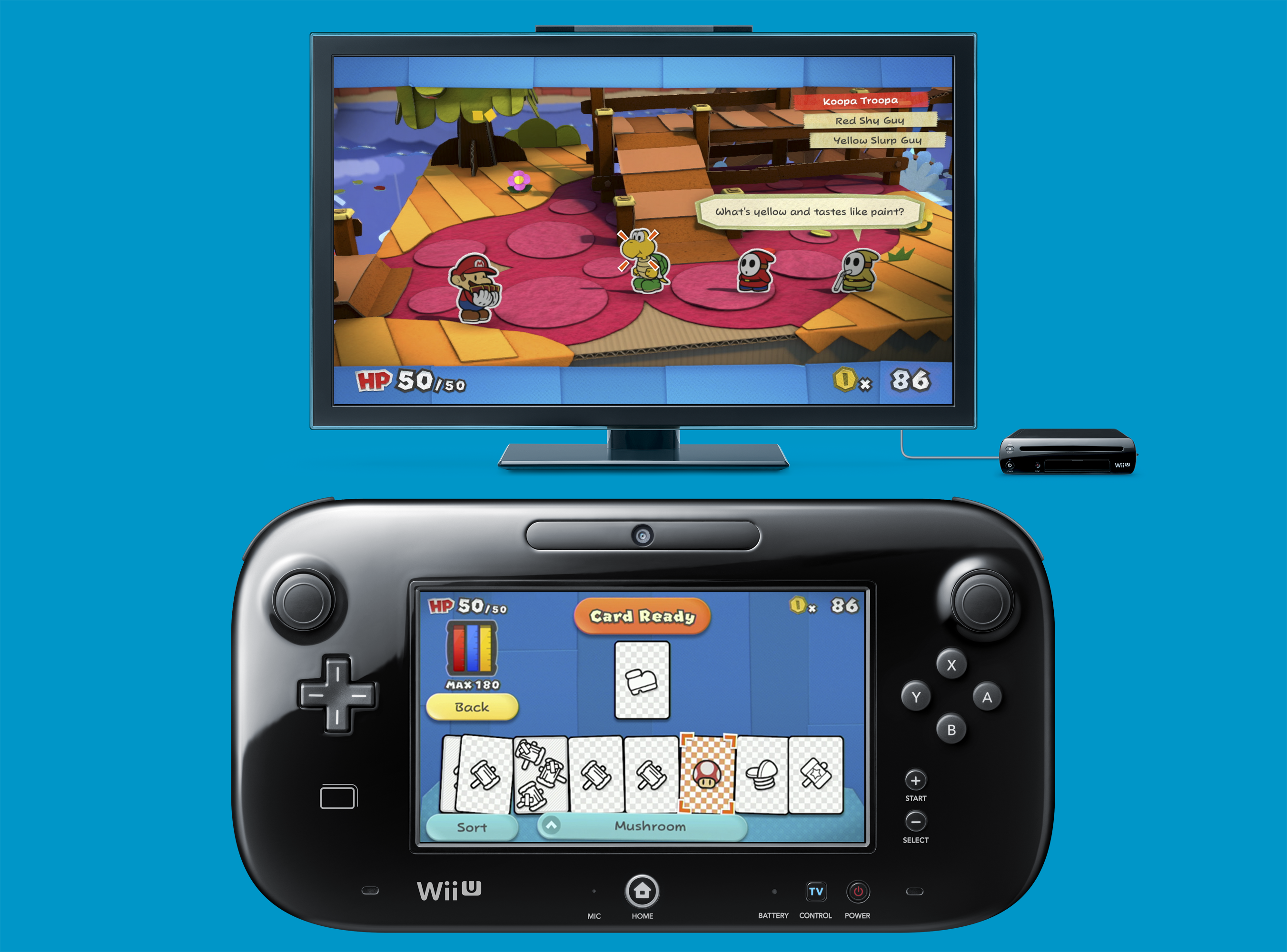 That is until the gameplay is introduced. Once again, the series has forgone its traditional turn based RPG roots, in favor of a more gimmicky based battle system. Throughout the game you can find, buy, and sell special cards which you use in battle. These are used by selecting a card in your hand via the Wii U gamepad, coloring it in, and then flicking it. While it was amusing the first couple of times, it quickly wore out its welcome. Now, I’m not opposed to changing up how encounters work. In fact, I very much enjoyed the real time battle system in Super Paper Mario, but what the game fails to do with its battle system is find ways to properly incentivize fighting.