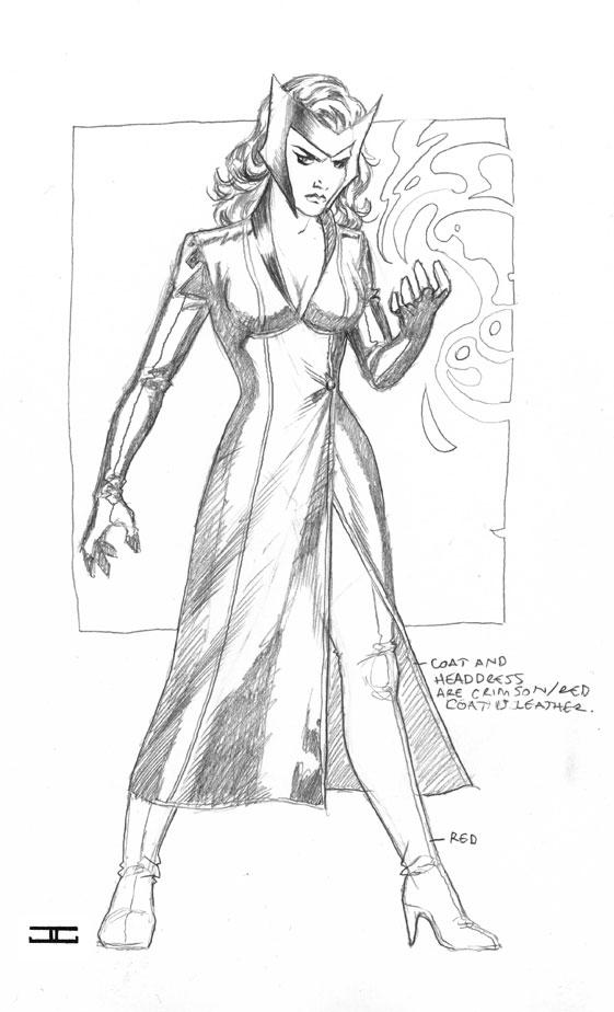 The Scarlet Witch has always had one of the least practical costumes for a super hero, so having come out the other side of “AvX” and “Children’s Crusade,” that was something we were looking to address. I didn’t really have anything specific in mind other than, “More practical” and “Keep the tiara…” That Tiara is the most easily identifiable aspect of any Scarlet Witch outfit. It was John who came back with the more covered-up civilian style, which we liked and made sense. Wanda is in a different place right now, she doesn’t feel like a super hero any more and she’s looking for a way to atone for her past actions and to move forward as a person, so this look underlines that change in her outlook.