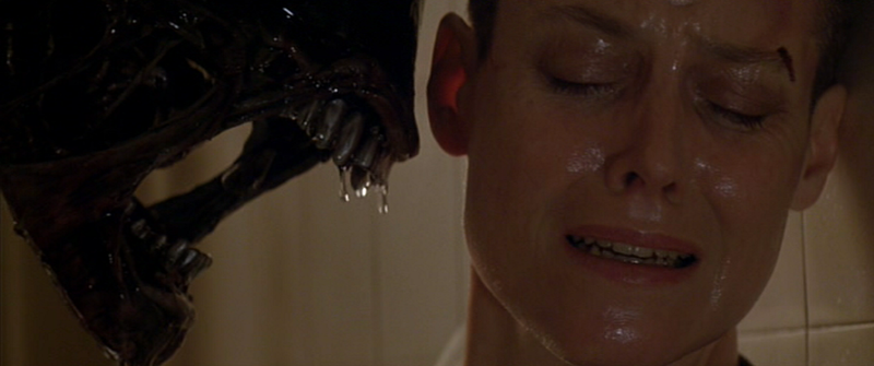 An alien explodes from a local dog (mixing with the dog DNA) and begins to attack members of the colony. Ripley also realizes she’s carrying an alien baby and must sacrfice herself to save the rest of the inmates.