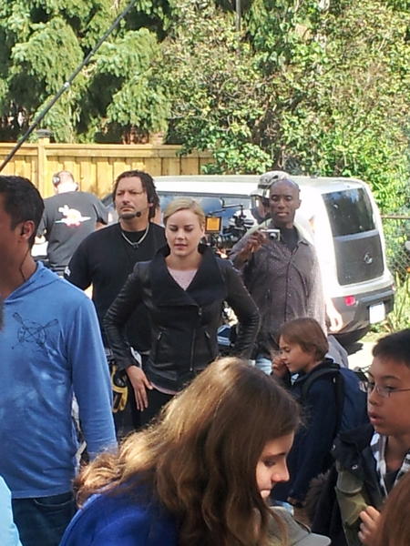 Abbie Cornish, who will be playing Alex Murphy’s wife, getting a picture taken of her well….rear area: