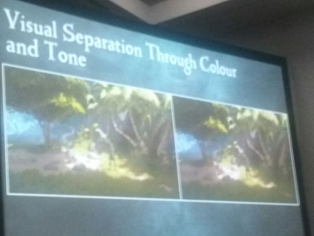 After that, they let art director Ryan Stevenson take the wheel as he began to talk about the art style of the game and the decisions they made with it. One of them is that they wanted to have an art style that looks good, but can also be easily be distinguished. One of the examples given was that a certain screenshot from the game was blurred out, but still just as easily recognized as the clear version of it. This was referred to as separation through color and tone.