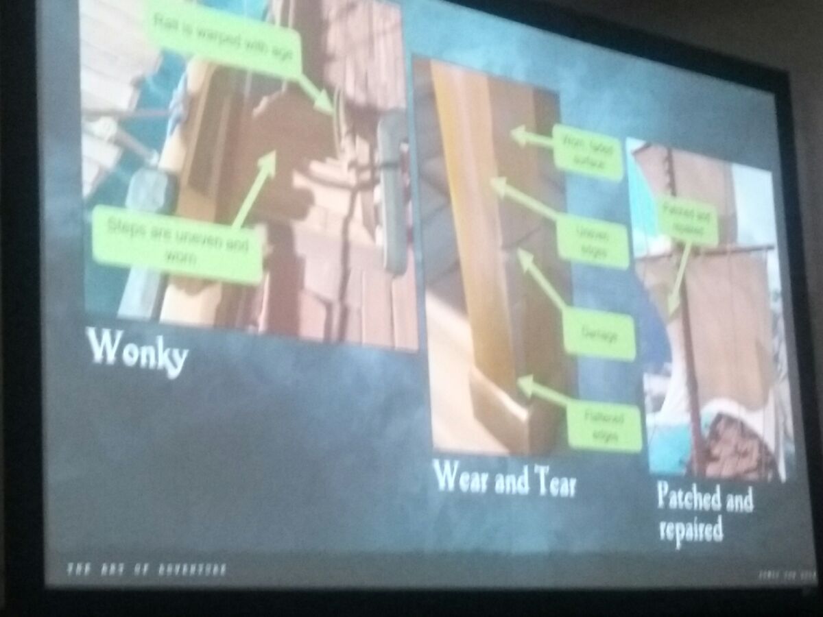 SOT panel 4They then moved on to talk about how important detail is and how everything in the game has a story. One of the biggest things they went for was making it so that nothing looked new or polished. They wanted everything to look used. This method was what they described as the wonky method. They then gave a couple of examples like how if you look at the ship’s floorboards they’ll appear uneven, creaky, and even broken. This help gives the feeling that everything you encounter in the game is pre existing and has a long backstory to it.