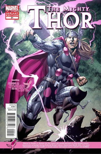 October is National Breast Cancer Awareness Month and Marvel will be teaming up with Susan G. Komen For The Cure and releasing special variants in order to raise awareness. In addition all Marvel superhero comics in October will feature a special one-page advertorial educating readers about breast cancer. A message that Marvel will also make available on its internet site and via social media.