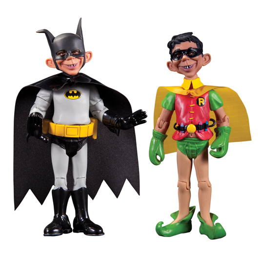 Just in time for MAD® Magazine’s 60th anniversary, comes Alfred E. Neuman’s unique take on Batman and Robin. Striking fear into the hearts of criminals everywhere – or at least the ones that scare easily – evildoers everywhere won’t know how to handle MAD’s version of the Dynamic Duo. These Caped Crusaders can strike mirth in the heart of collector’s homes for $50.