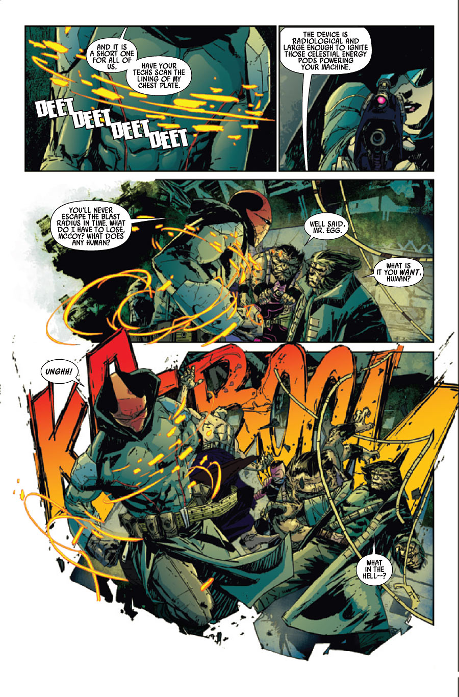It feels amazing. Honestly, it’s a lot like my experience with “Fantastic Four” — I never thought I’d want to write this book until it was offered and I began thinking about it. So many great writers, so many landmark moments — it was intimidating, still is. But the more I began to think about the relationship between Bruce and Hulk, the more I began fantasizing about what it would be like to take the core concept a little more “back to center” like we did with Daredevil, the more intrigued I became. In 1962, Hulk was one of the most unique characters ever in comics because he viewed his powers as a curse, not a blessing. But that point of view is no longer unique — heck, that’s practically the emotional keynote of half the superhero books currently running. So Marvel gave their blessing to morph that attitude into something a little more heroic. Jason wraps things up, elegantly and brilliantly. (I’m forever jealous of the ideas he based his whole run around.) “Indestructible Hulk” #1 picks up a few weeks after the events of “Avengers vs. X-Men.” No one’s seen Banner or the Hulk for a while, and that makes the whole world very nervous.