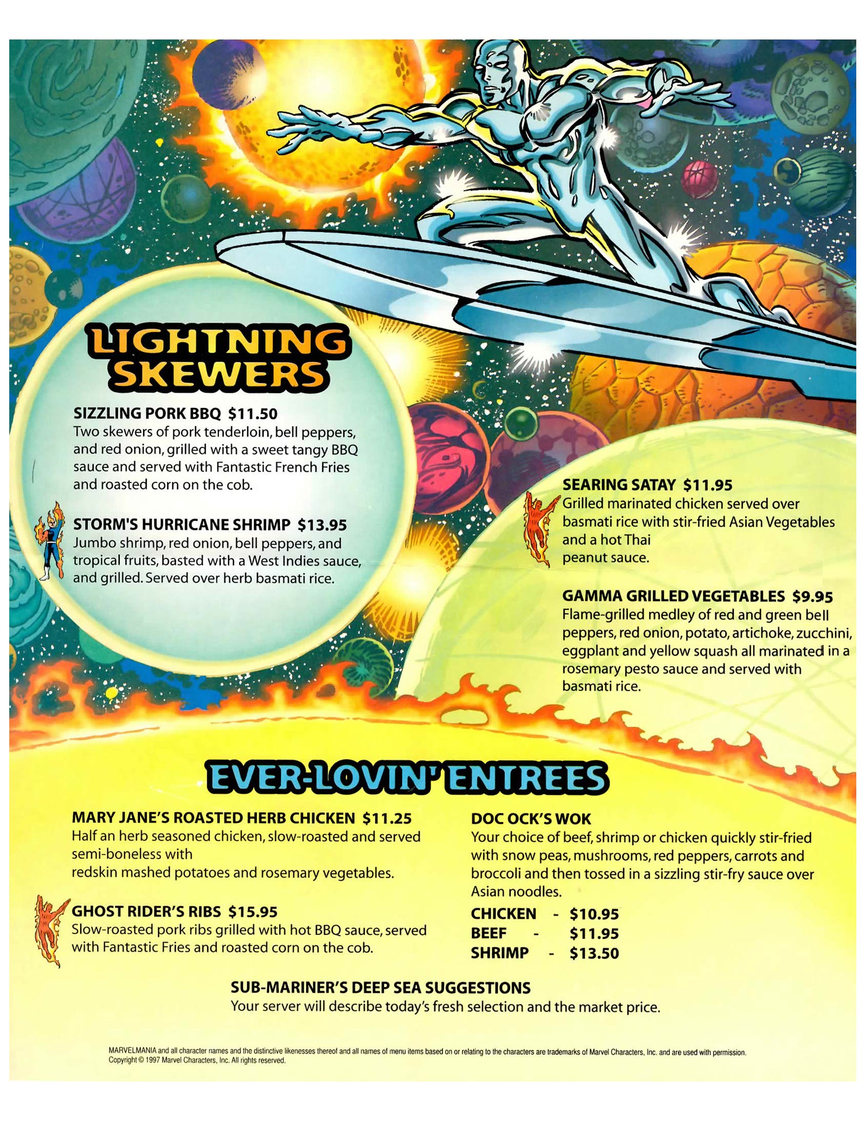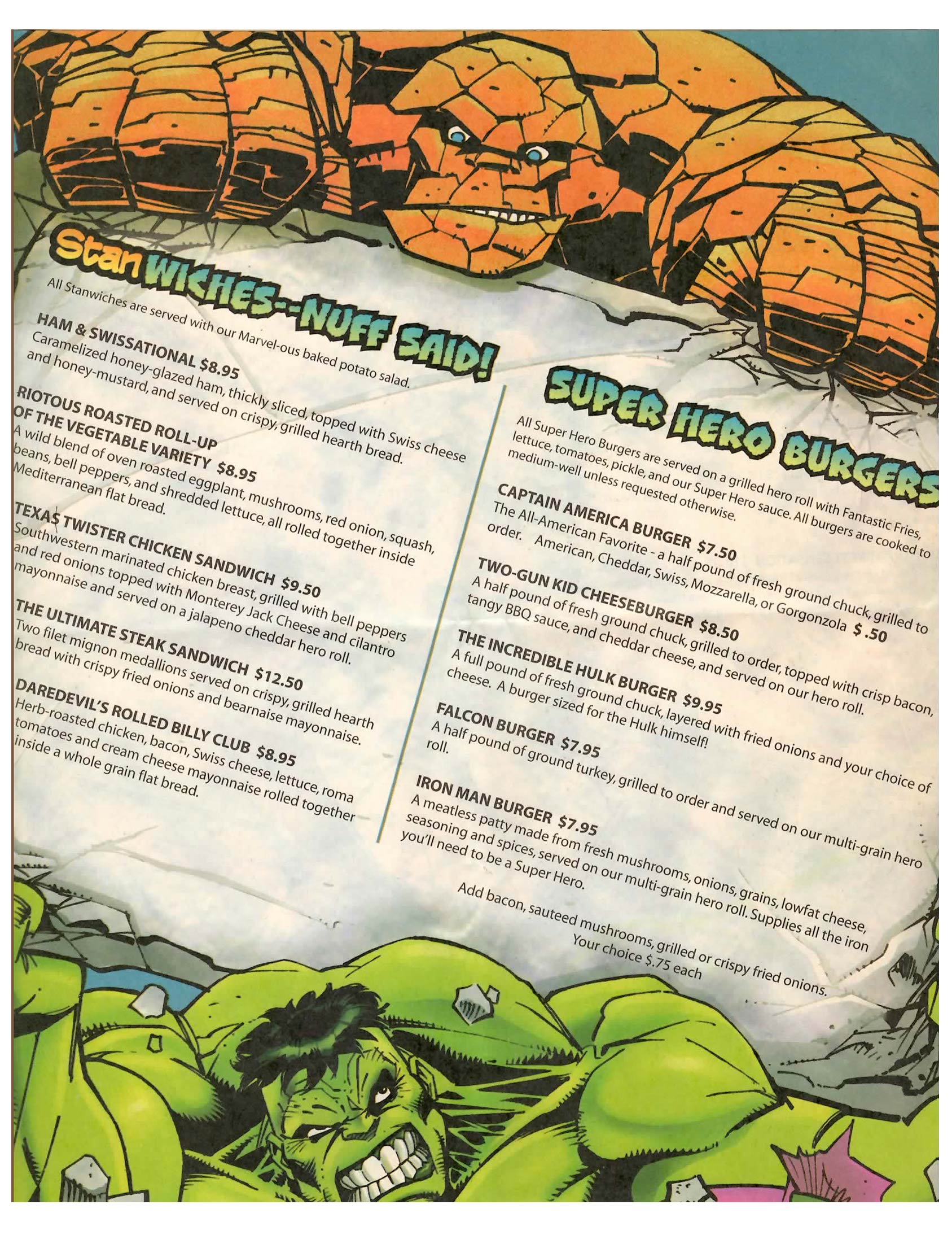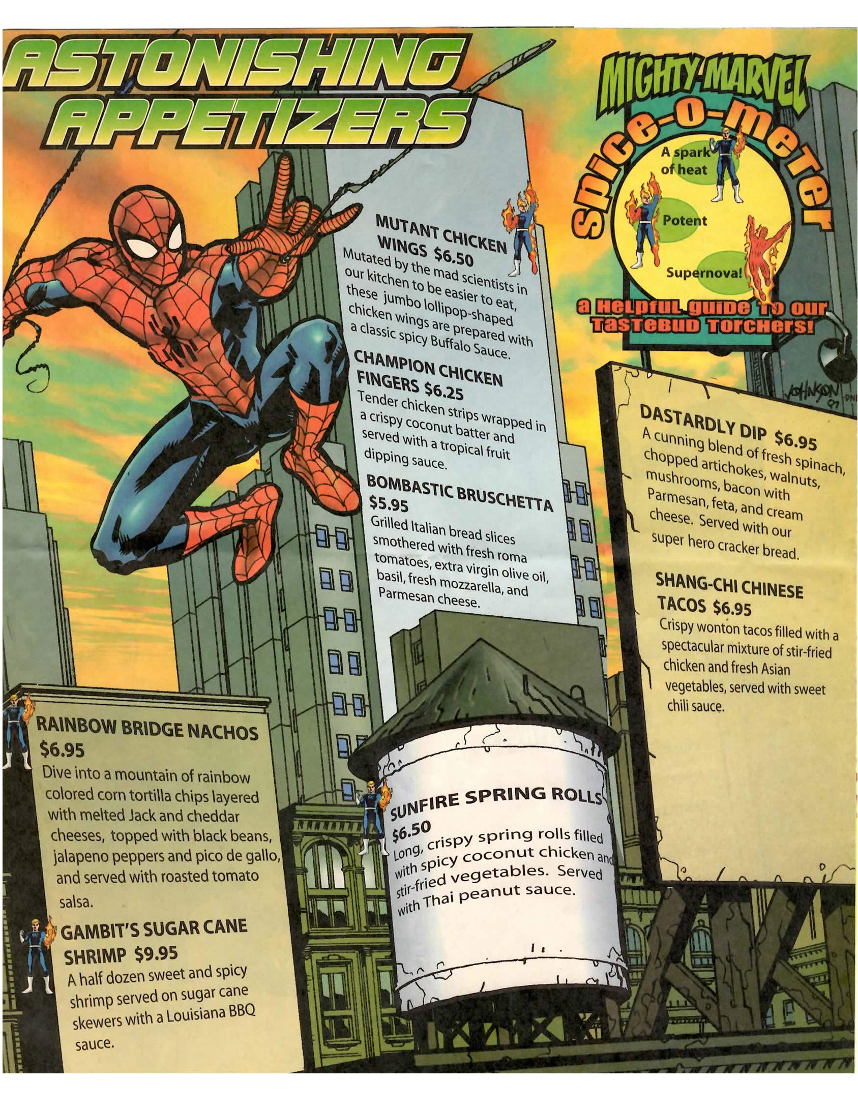 We may never know. But here, Geekscape has provided scans of the two original menus for you to look over… so that you can dream of a day, before Marvel was widely accepted as cool, when you could feed your feelings of geekdom alongside its largest symbols.