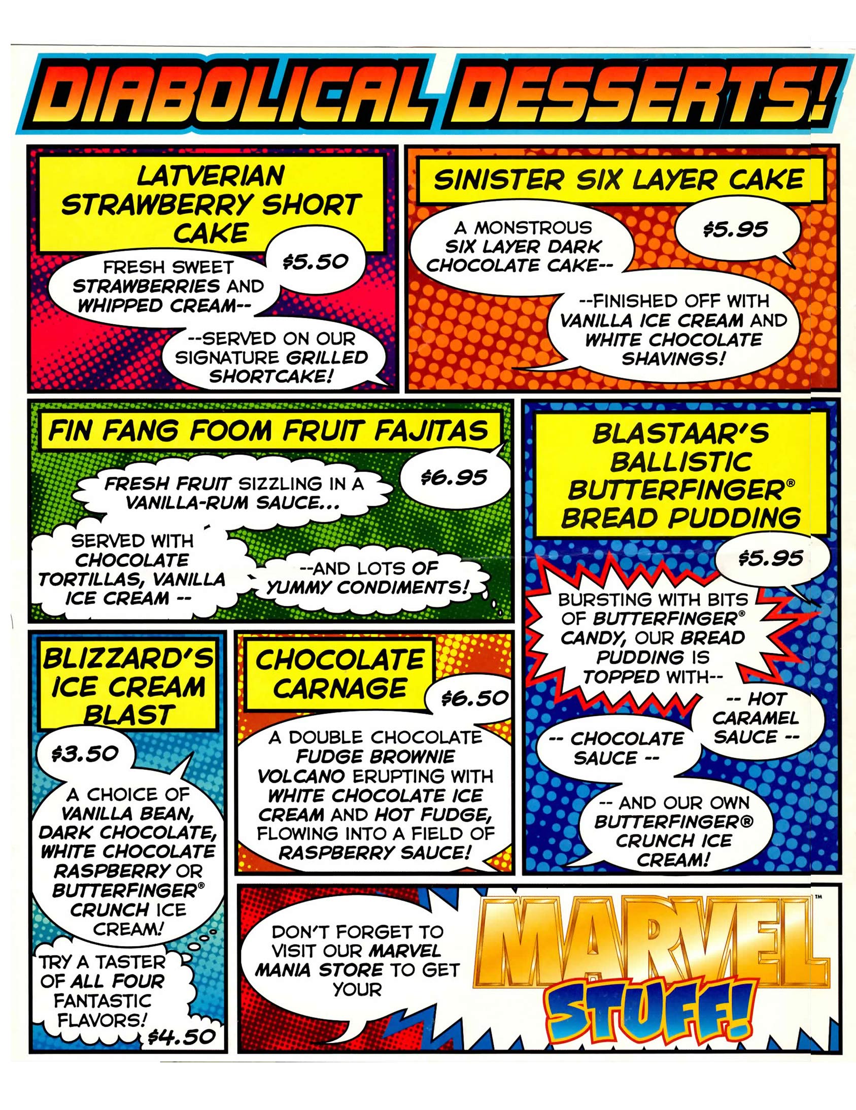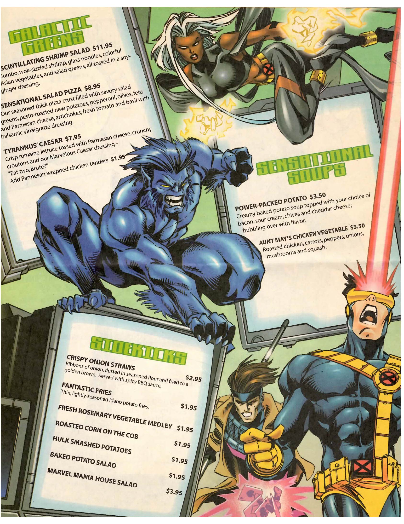 In November of 1998, at Universal Studios, the Marvel Mania Restaurant opened its doors for business. It offered food and drinks based on almost every Marvel hero (and villain!) that you could imagine. Sadly, it was closed less than a year later, in September of 1999. What happened? Why did it go under? What fiends were responsible (I’m guessing the chefs and the prices…)?
