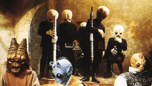 You don’t even have to leave the Star Wars universe to find an example of well-done race introduction. A New Hope‘s Mos Eisley Cantina is full of many different alien races, all distinct and imaginative variations on basic animal features. Their manner and clothing tell us immediately that these creatures are sentient despite reminding no one in any way of any human race or even the human race.