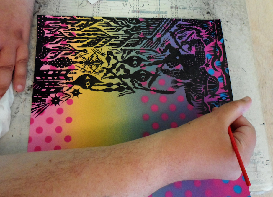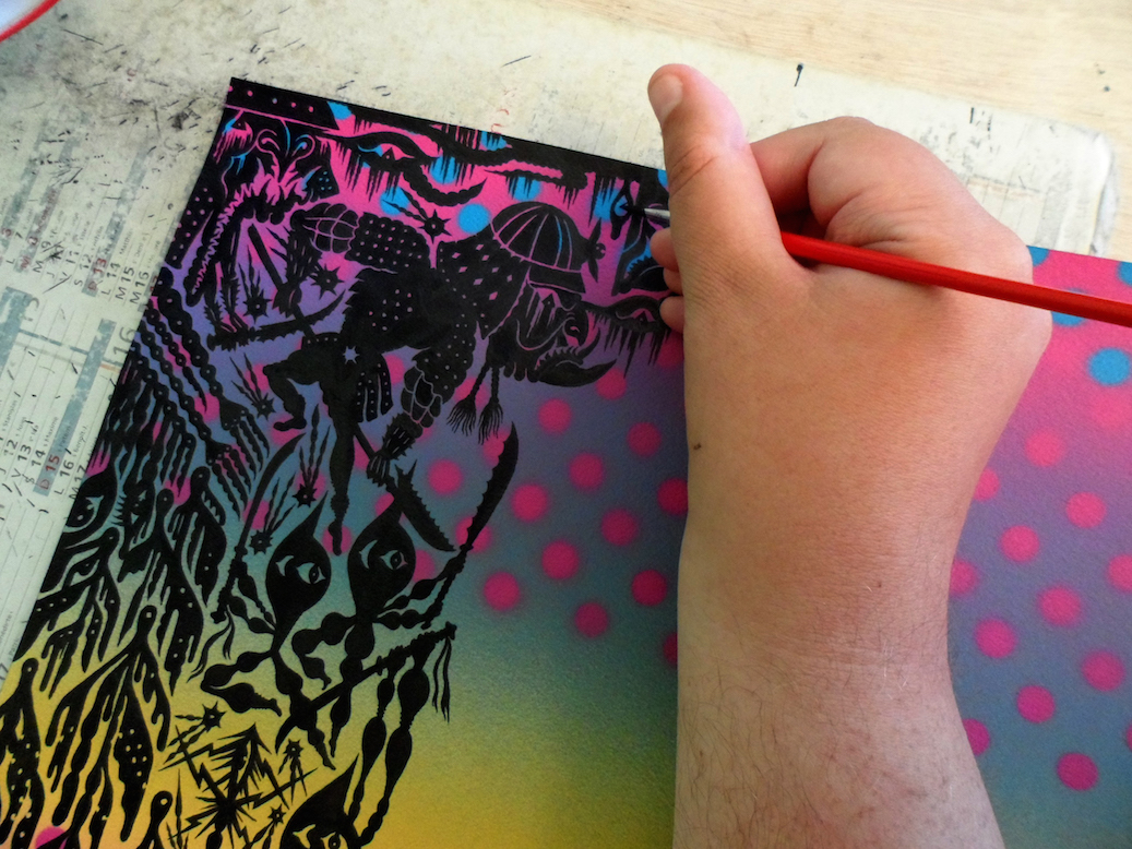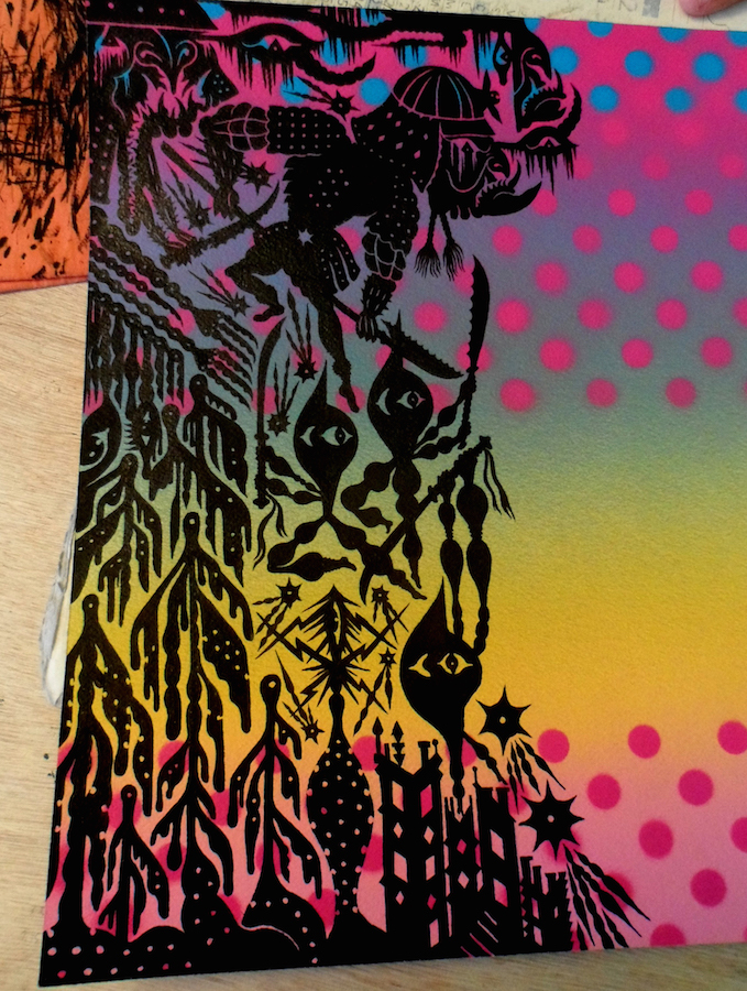 Take a look at Stephane’s piece below (click for full-size), and be sure to keep scrolling for an amazing behind-the-scenes look at its creation.
