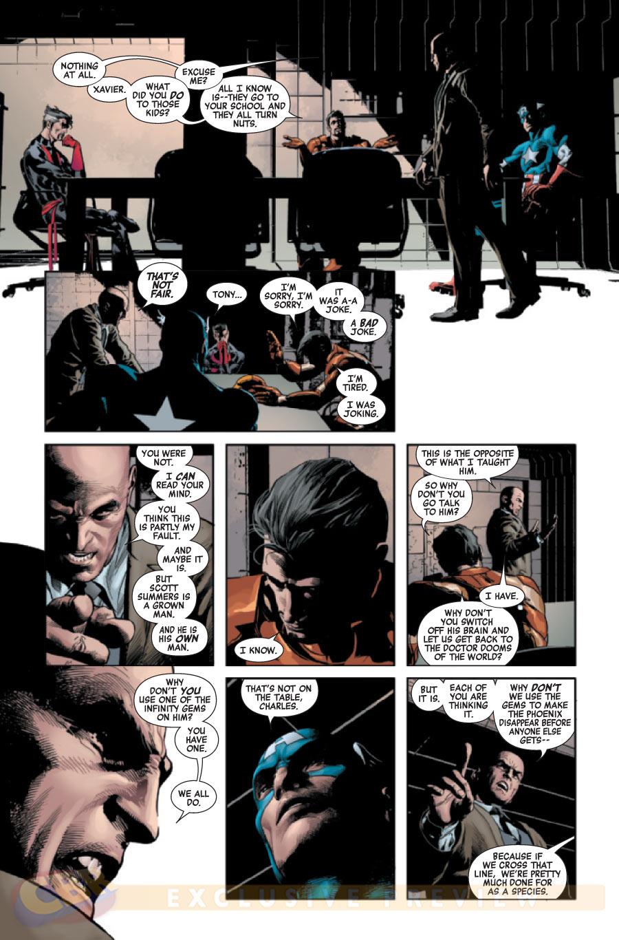 It’s funny, he’s moved his position a bit and his heart roams but the main thing is the question of belief. Anyone reading AvX can see what Tony is going through and he’s wrestling with stuff he doesn’t normally touch. It’s him looking at two plus two and asking why it equals four. That’s kind of the heart, the underlying theme of [IRON MAN], the idea that Tony Stark starts prodding areas where he hasn’t prodded as much before, while at the same time being a clear scientific, technological book. I stress, I’m not trying to turn Iron Man into Mystic Knight in issue one. That was the joke for a while actually, I had a list of ideas of everything I could possibly do and after looking at it I thought, “This is the worst thing I can possibly do.”