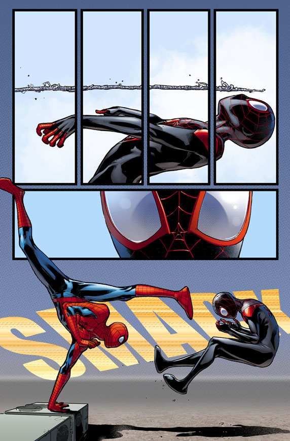 Marvel is proud to present your first look at Spider-Men #2, by the chart-topping creative team of writer Brian Michael Bendis and artist Sara Pichelli! When Peter Parker is thrown into Miles Morales’ world, the duo begin a journey that will not only answer questions about their own identities, but also reveal the truth about a major character in the world of Spider-Man! Kick off Spider-Man’s 50th anniversary in style with double the web-slinging action in Spider-Men #2, hitting comic shops, the Marvel Comics app and the Marvel Digital Comics Shop this June.
