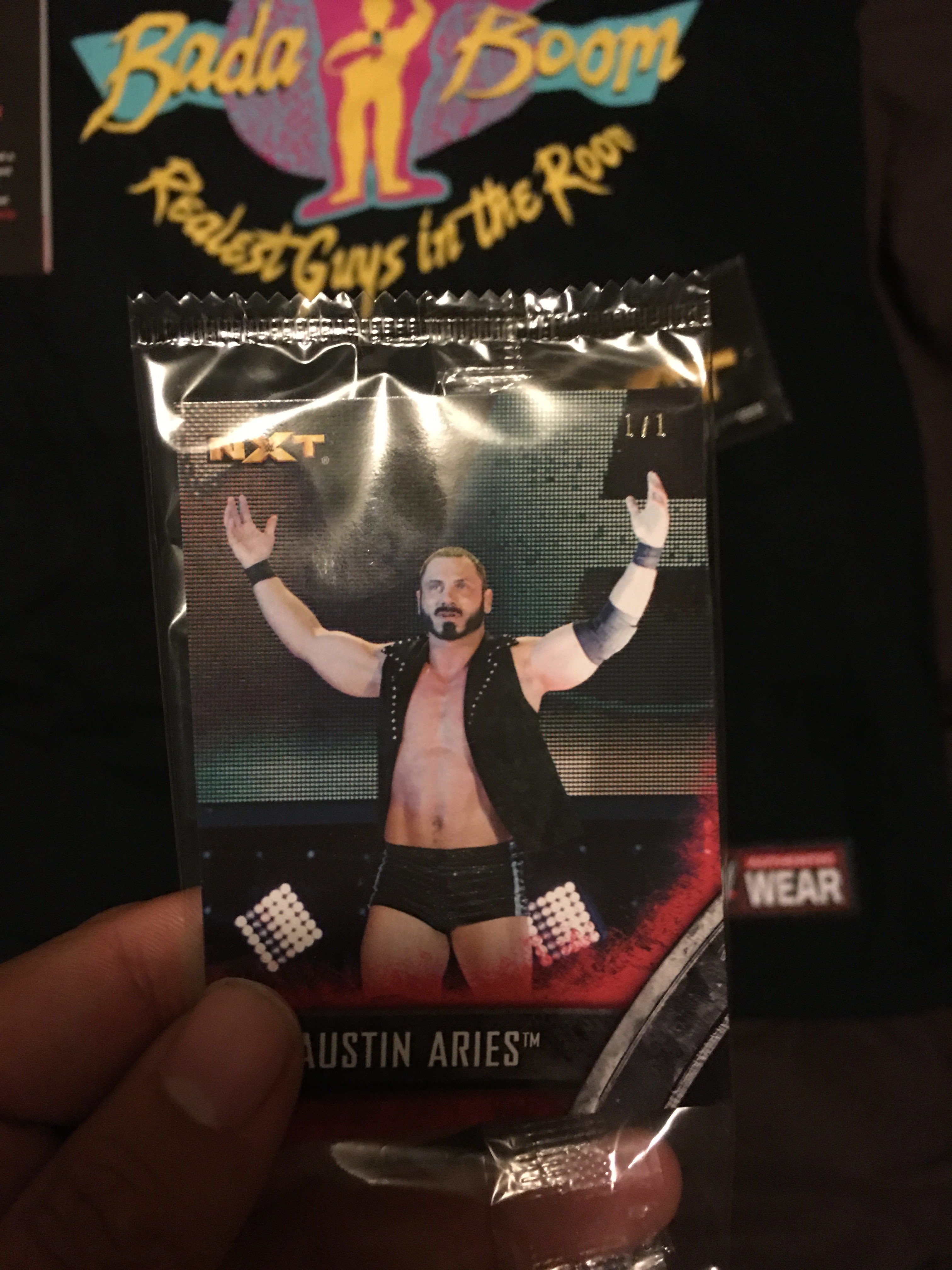 Representing NXT, we got two items showing off the future of the WWE. First, the NXT patch will let you literally wear your fandom on your sleeve, or wherever you want it to go! Then, a preview of the upcoming Topps NXT trading card line gives us a look at Austin Aries. Labeled as an “NXT Prospect”, the back gives a brief history of The Greatest Man Who Ever Lived. It’s a great way to introduce fans who don’t watch NXT or don’t follow the indies to a guy like this, even if it is weird that someone who has been wrestling for over a decade is being called a “prospect”. Still, I get what they’re going for.