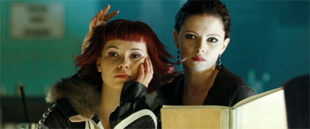 While at the lame club, that blonde vampiress sees the strawberry blonde’s tendency towards pick-pocket activities and strategically places some cash in eyesight and then does the “come hither, Imma lesbian with money” dance at her, which looks creepily like a seizure, but with more oral sex.