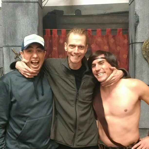Ultimately, we decided to shoot the sizzle that you now see below on GeekscapeTV. Georg, William, Paul and I wrote something that we could afford from scratch, something that we could present to TV Networks and show them in a modest way what the show could be, especially the 80s nostalgic tone (and of course… the wrestling!). It wasn’t easy, as William had some hilarious ideas and I had trouble figuring out what we could afford to shoot in 3 days. Finally Paul, Georg, Graham, William and some of our friends (Brian Gilmore, Marisha Ray, Yuri Lowenthal, Nick Gregorio, Jason Trost, Kari Lane and Mr. Doug Jones) spent a few days shooting it after the dungeon/castle set was built and we had found a place in sunny Simi Valley that would work for the exteriors. We had to delay one day from the shoot for a few months due to Doug’s Falling Skies schedule but Doug is literally the sweetest man I’ve ever met in Hollywood (and one of the most talented) so it was definitely worth the wait! And of course, seeing him vaporize Gilmore wasn’t something I was going to compromise! I’d been waiting to see Gilmore killed on screen for years!