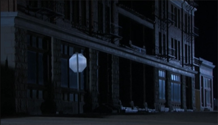 So please ignore the goddamned stop sign in front of the hotel. Oh, and the open bar across the street from the hotel. You know, in the town that one of the less mentally disabled kids said had no vistors aside from the occasional tourist.